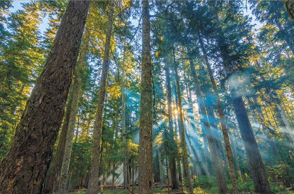 Die österreichische Forstwirtschaft ist vorbildlich – mit der gesetzlichen Verpfl ichtung zur nachhaltigen Bewirtschaftung seit 1857(!). (Immerhin seit Mai 2017 ist dies auch ein von der UNO für die gesamte Weltgemeinschaft beschlossenes Ziel ...) Heute ist knapp die Hälfte des Staatsgebiets Wald, Tendenz steigend: Der durchschnittliche jährliche Zuwachs beträgt 5.500 Hektar – oder ca. dreimal die Fläche des Wörthersees. Rechnet man in Festmetern, wird es noch eindrucksvoller: Pro Minute(!) wächst der Holzvorrat in Österreich um zehn Kubikmeter. Netto, also nach Abzug des gesamten genutzten Holzes. Das heißt: In nicht einmal fünf Minuten wächst in unseren Wäldern ein Einfamilienhaus! Theoretisch würde knapp ein Drittel des Holzzuwachses genügen, um sämtliche Hochbauvorhaben des Landes als Holzbauten umzusetzen – und damit einen enormen Beitrag zum Klimaschutz zu leisten. Denn jeder verbaute Festmeter Holz bindet langfristig CO2 – je nach Holzart zwischen etwa 750 kg (Fichte & Co) und 1,4 Tonnen (Buche, Eiche). Der Zusammenhang ist leicht erklärt: Eine Tonne Holz besteht zu etwa der Hälfte aus Kohlenstoff. Wird dieser freigesetzt durch Verbrennung oder Verrottung des Holzes, entsteht dadurch die 3,7-fache Menge an CO2. Allein in den (Vollholz-) Möbeln in einem durchschnittlichen österreichischen Haushalt sind so mehr als dreieinhalb Tonnen CO2 gebunden – so viel, wie durch 20.000 Autofahrkilometer erzeugt werden. Und das ist nur der kleinere Teil der Klimaschutzwirkung von Holz und Wald. Noch deutlich mehr Treibhausgase erspart der Wegfall der Produktion der wahren Klimasünder: Beton und Stahl.