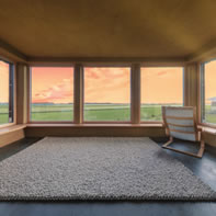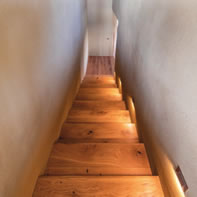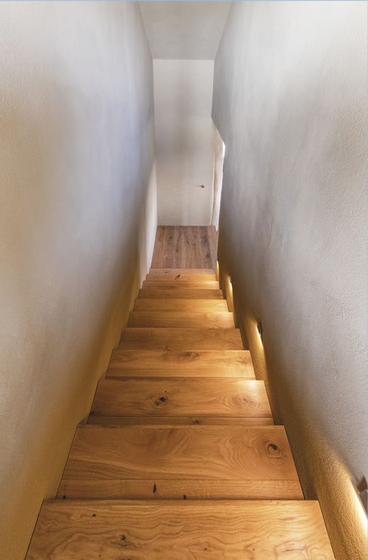 Erlinger Holzbaus Leistungsumfang umfasste die Holzriegelkonstruktion (Fichte), die Eiche-massiv-Fensterbänke im Innenbereich, die Lärchenholzfassade sowie die Treppe. Als baulich aufwendig stellte sich der „Hochsitz“ heraus, das als Galerie ausgeführte Obergeschoß mit südseitig 1,5 Meter Dachüberstand.