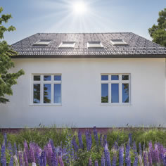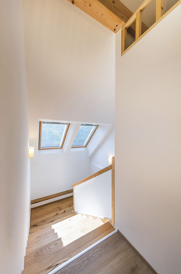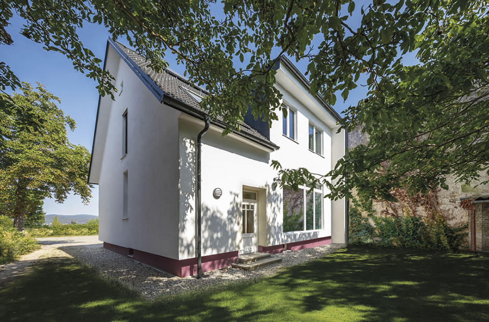 Schilfstukkatur und Kalkputz als ökologische Vollwärmefassade ausgeführt. Das gesamte Dach wurde